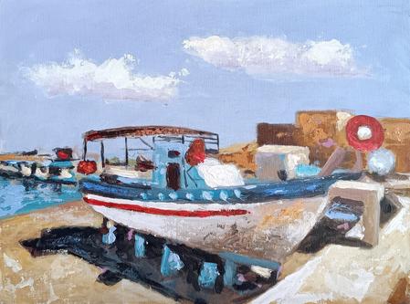 "Fishing boat in Kato Paphos Acrylic on board 30 x 40 sm Price: 75 euro